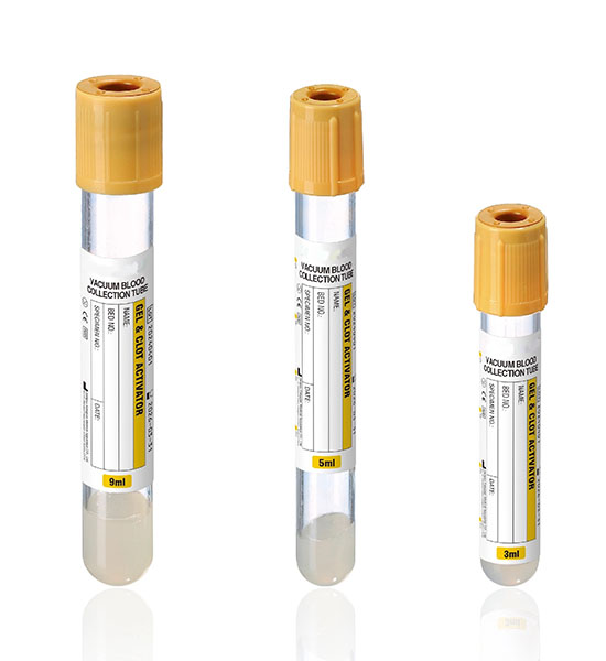 Gel and clot activator tube is used for blood serum biochemistry, immunology and drug testing, etc. There uniformLy sprays the coagulant on the surface inside the tube, which will greatly shorten the clotting time. As the imported separation gel from Japan is pure substance, very stable in physicochemical property, it can well stand high-temperature so that the gel will maintain a stable status during the storage and transportation process. The gel will get solidified after centrifugation and completely separate serum from fibrin cells just like a barrier, which effectively prevents the substance exchange between blood serum and cells. Serum collection efficiency is improved and high-quality serum will be obtained, thus it comes to more authentic testing result. Keep the serum stable for more than 48 hours, no obvious change will happen on its biochemical features and chemical compositions, then the tube could be directly used in sampling analyzers.