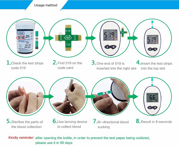 Test range: 1.1~33.3mmol/L(20~600mg/dL)
