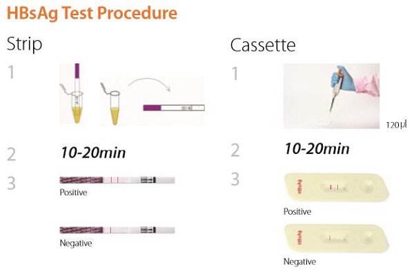 Various test kits are available for Hepatitis B virus (HBV) infection, and they are widely used in the clinical diagnosis, treatment and prognosis of hepatitis B disease. The presence of HBsAg indicates recent infection, and if it persists for more than 6 months, the patient may become a chronic carrier. The development of serological assays to detect hepatitis B surface antigen (HBsAg) has played a major role in the diagnosis of hepatitis B virus (HBV) infection.