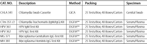 One-Step Chlamydia Test kit is intended for in vitro diagnostic use in the rapid, qualitative detection of Chlamydia trachomatis directly from female endocervical swab and male urethral swab, in addition to ocular specimens from symptomatic patients. The test is intended for use as an aid in the diagnosis of Chlamydia infections. The test is a rapid qualitative immunoassay based on the immunochromatographic principle..