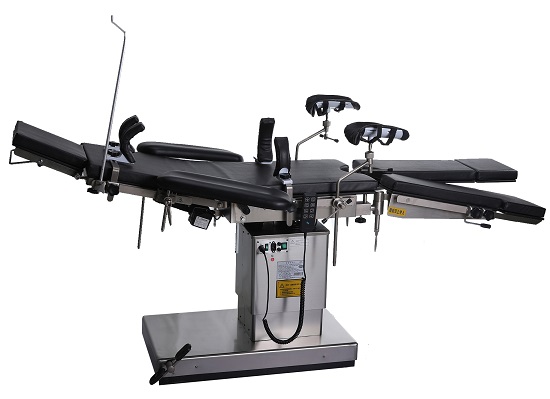 JHDS-2000 Electric operating table is suitable for surgical procedures of the head, neck, thorax, abdomen perineum and extremities as well as for gynaecological, obstetrical, urological, otorhino laryngological and orthopaedics operations. It's raising, lowering, lateral tilt, reversed trendelenburg and trendelenburg , the up-down folding of the back section are all conducted electrically and controlled by buttons.