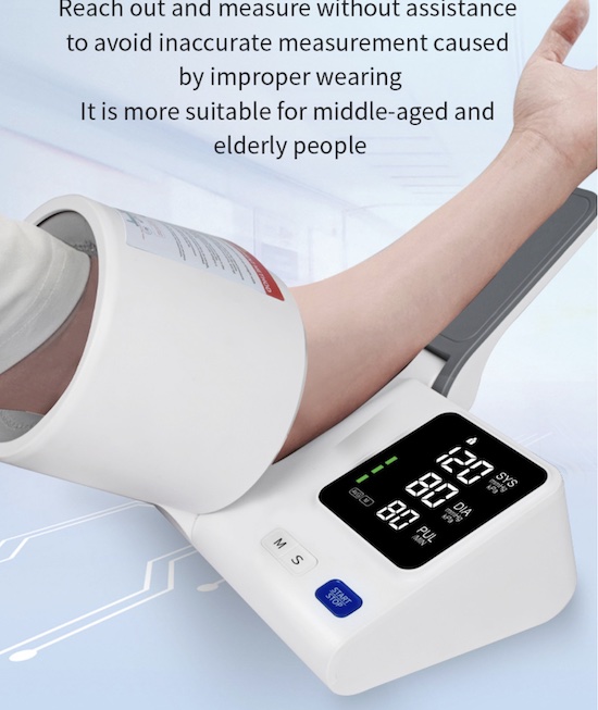 One-touch pressure measurement, easy to use.5.3-inch high-definition LED large screen display, large font, clear to see.99 sets of records for two people, parents can use them separately.Smart heart rate monitoring.Customizable in multiple languages, with an independent toggle switch to control the volume of the voice (the voice can be loud, quiet, or off), easy to operate, and intelligentdiagnosis.The innovative posture correction function is designed. The user can only measure when the posture is correct and the elbow pressure switch is triggered. The voice reminder function is also designed to avoid measurement errors