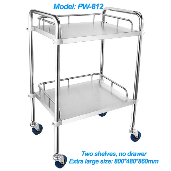 Features: - Stainless Steel - Detachable - Two Shelves - Extra Large Size: 800*480*860mm - With Castors