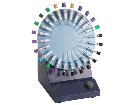 Equipped with silicagel piece, it's easy and convenient for putting in and taking out specimen tubes. The working plate runs circularly, speed can be adjusted by the operating staff according to different specimen. It is applicable to the mixing of clinical blood routine and vacuum blood collection tubes.