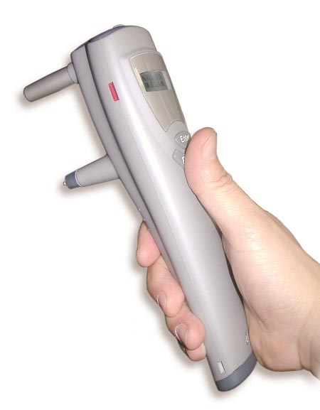 is used to measure intraocular pressure, using the principle of: the probe hits the surfaces of