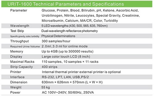 ·Conducts 11,12 and 14 parameters urine analysis with URIT-11,