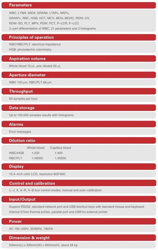 - Micro sample volume at 10uL for whole blood mode and 20uL for pre-diluted mode