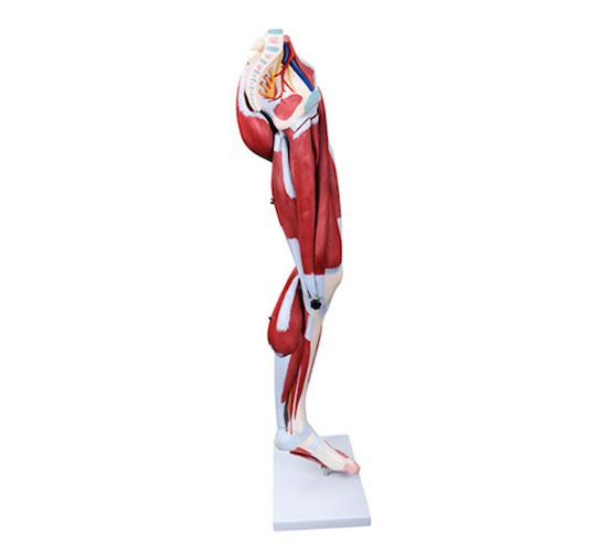This deluxe muscular model shows in great details the anatomical structure of the leg. The superficial and deeper muscles, vascular structures, nerves and ligaments are all accurately represented.