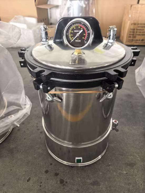 The product utilizes saturated steam to rapidly and efficiently sterilize articles. It can be used in hospitals, public health centers, health stations,clinics in factories and mines, scientific research institutes, etc, to sterilize medical equipment, surgical dressings, glass utensils, solutions,substrata. It can also be used as cooker in plateau areas and be used to make high quality drinking water in industrial and mining enterprises.