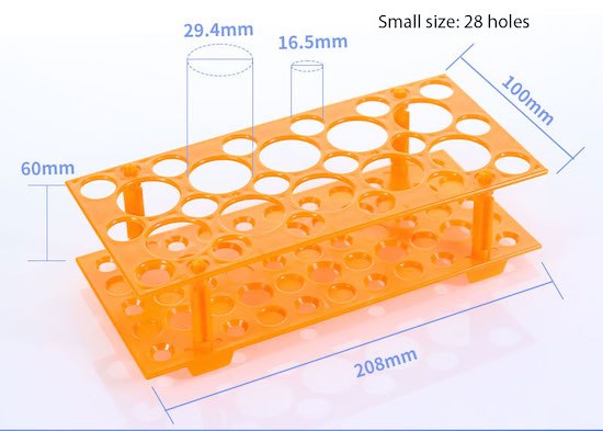 - Small size: 28 holes, 18 holes for 10/15ml tube, 10 holes for 50ml tubes
