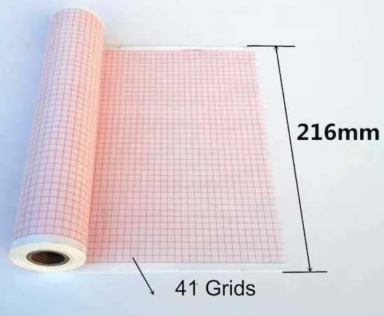 Specifications: - for 12 channels ECG - Paper size: 215mm or 216mm - Paper length: 20m or 30m - 41 grids
